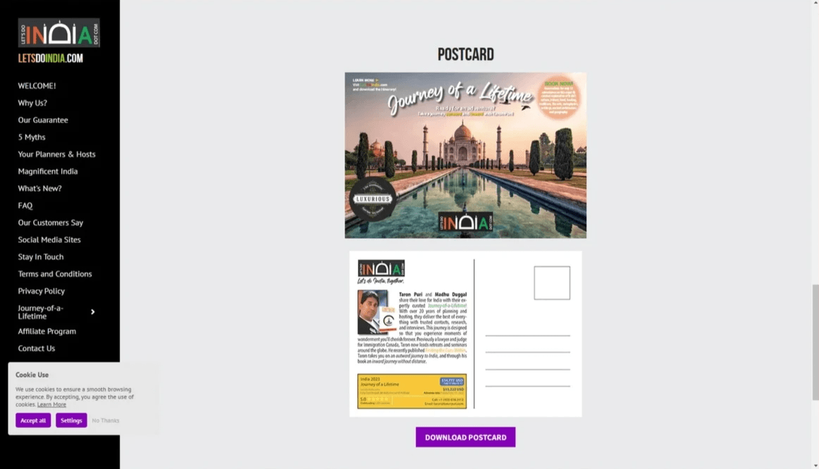 In an industry of travelers who share a global wanderlust, where dreams of ancient spices and mysteries of ancient historical sites collide with fears of the uncharted, Taron Puri reached out to me at Jorgensen Designs. For two decades, Let's Do India had thrived on the intimacy of personal connections and recommendations of past travelers, Taron's emails to his network, and local presentations that vividly described his guided tours through India's labyrinthine wonders.