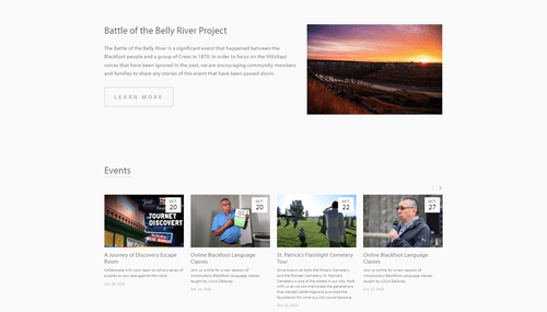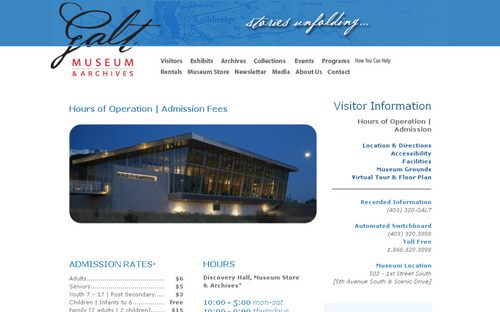 The website is a large information site for gallery visitors, as well as those looking for documents from the past in Southern Alberta. The online archives database and research is a portal for people looking for information, without leaving their desk.